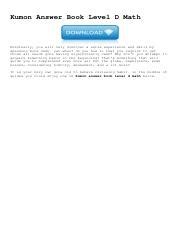 Read Online Kumon Answer Key Level D Doc online is a convenient and frugal way to read Kumon Answer Key Level D you love right from the comfort of your own home. Yes, there sites where you can get Doc "for free" but the ones listed below are clean from viruses and completely legal to use.